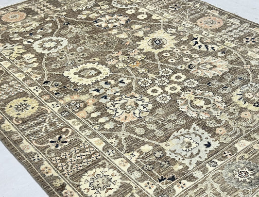 Beige & Ivory Premium Handwoven Pure Wool Sultanabad Rug, 5ft 9in x 8ft 10in