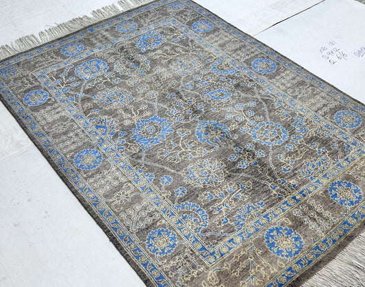 Charcoal & Blue Premium Handwoven Pure Wool Chobrang Rug, 5ft 0in x 7ft 5in