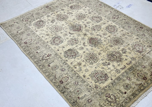 Ivory Premium Handwoven Pure Wool Chobrang Rug, 5ft 9in x 7ft 8in