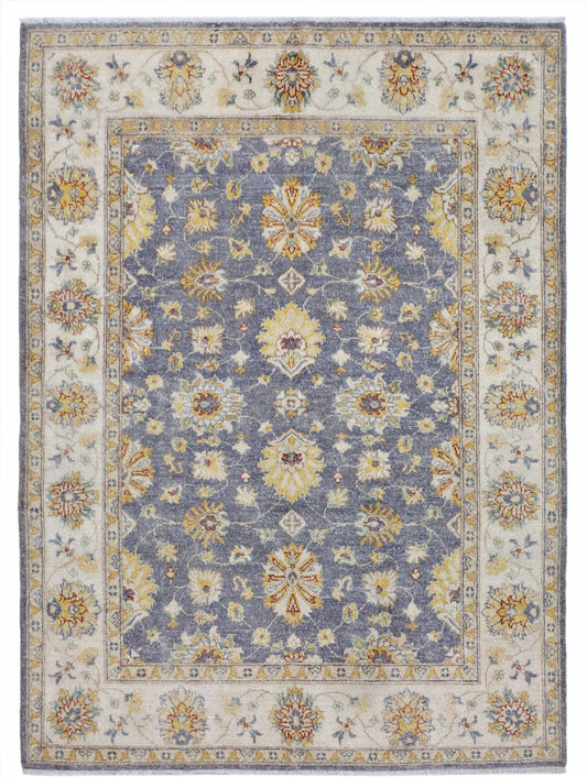 Ivory & Grey Premium Handwoven Pure Wool Chobrang Rug, 4ft 1in x 5ft 11in