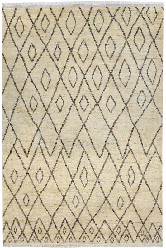 Ivory & Brown Premium Handwoven Pure Wool Moroccan Rug, 5ft 1in x 7ft 3in