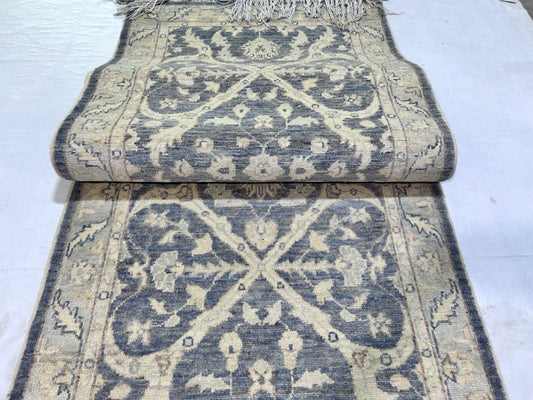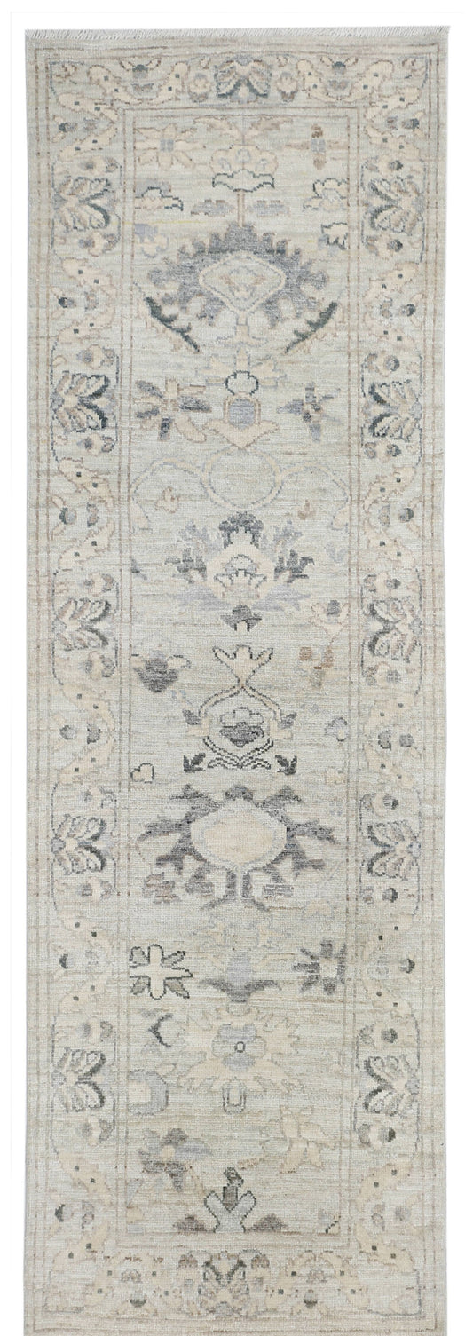 Grey & Ivory Premium Handwoven Pure Wool Oushak Rug, 3ft 0in x 10ft 4in