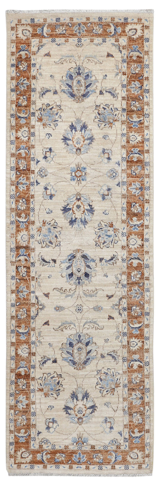 Ivory & Rust Premium Handwoven Pure Wool Chobrang Rug, 2ft 9in x 9ft 7in