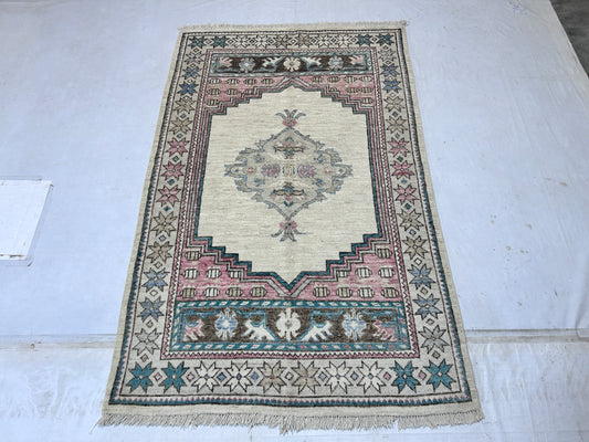 Lilac & Ivory Premium Handwoven Pure Wool Oushak Rug, 3ft 11in x 5ft 10in