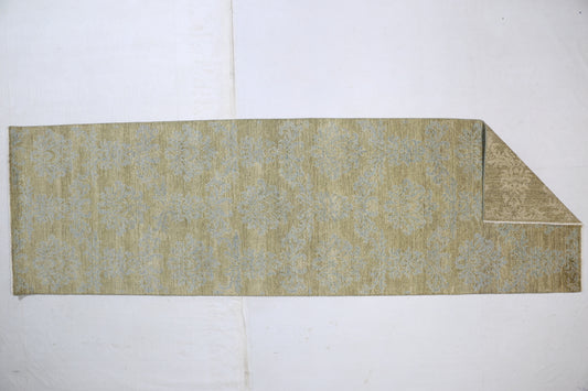Tan & Grey Premium Handwoven Pure Wool Chobrang Rug, 3ft 0in x 9ft 11in