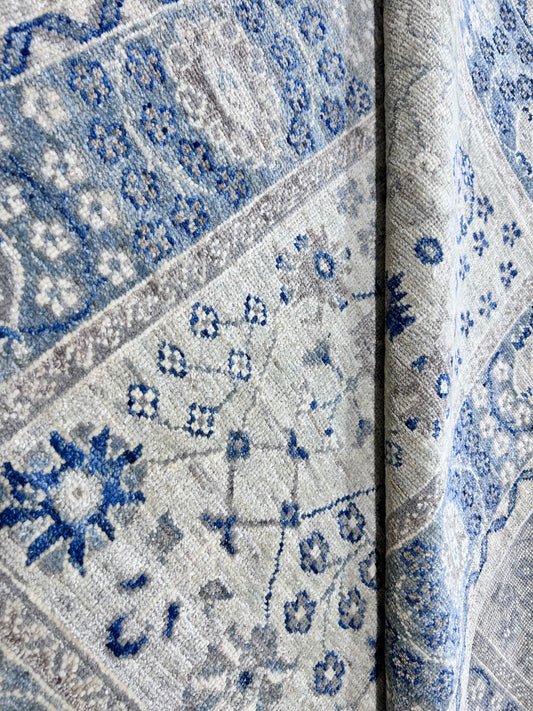 Sky Blue & Ivory Premium Handwoven Pure Wool Chobrang Rug, 2ft 6in x 9ft 9in