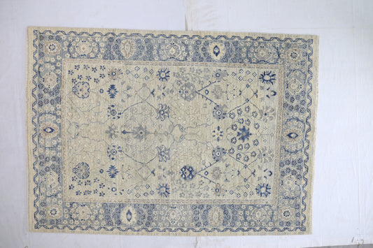 Silver & Grey Premium Handwoven Pure Wool Oushak Rug, 4ft 11in x 6ft 10in