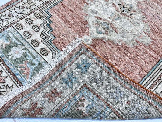 Rust & Ivory Premium Handwoven Pure Wool Oushak Rug, 3ft 10in x 5ft 8in