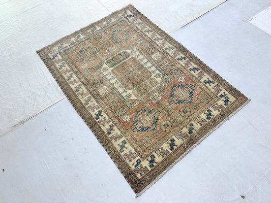 Sky Blue & Orange Premium Handwoven Pure Wool Chobrang Rug, 4ft 0in x 5ft 9in
