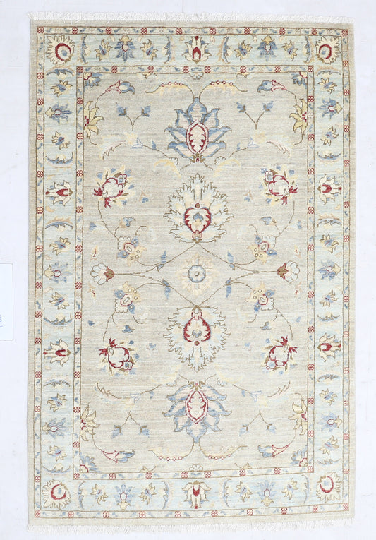 Beige & Sky Blue Premium Handwoven Pure Wool Chobrang Rug, 4ft 0in x 6ft 1in