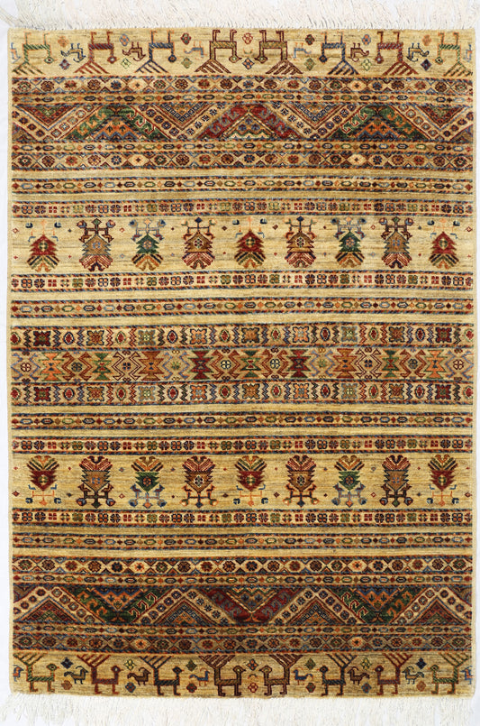 Beige & Grey Premium Handwoven Pure Wool Chobrang Rug, 3ft 1in x 4ft 5in