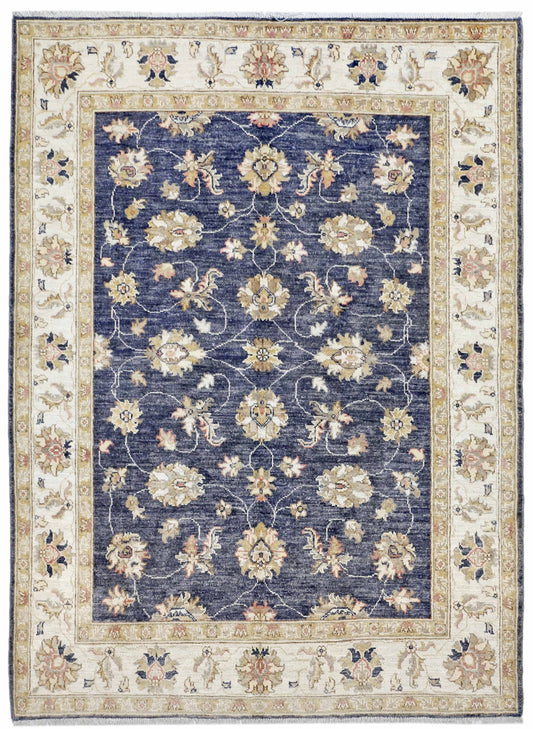 Blue & Ivory Premium Handwoven Pure Wool Chobrang Rug, 4ft 10in x 6ft 7in