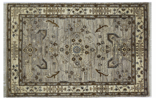 Brown & Ivory Premium Handwoven Pure Wool Chobrang Rug, 4ft 1in x 6ft 0in