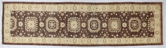 Brown & Ivory Premium Handwoven Pure Wool Chobrang Rug, 2ft 9in x 9ft 10in