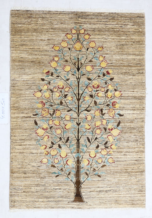 Brown & Gold Premium Handwoven Pure Wool Gaba Rug, 4ft 0in x 5ft 11in