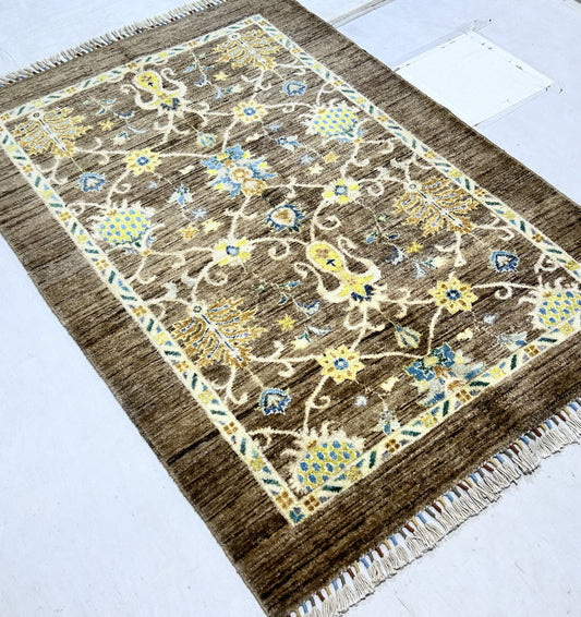 Brown & Beige Premium Handwoven Pure Wool Chobrang Rug, 3ft 11in x 5ft 10in