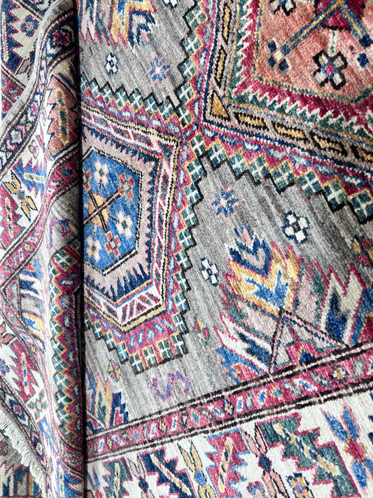 Brown & Rust Premium Handwoven Pure Wool Super Kazak Rug, 3ft 4in x 4ft 11in