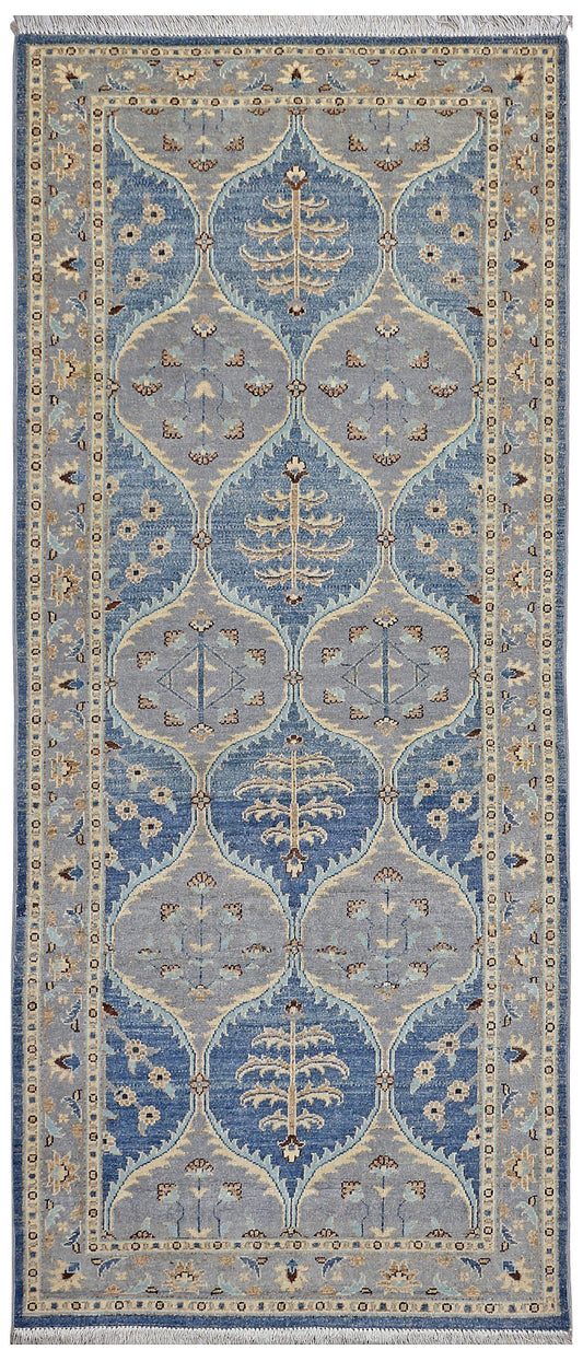 Blue & Silver Premium Handwoven Pure Wool Chobrang Rug, 3ft 4in x 7ft 11in