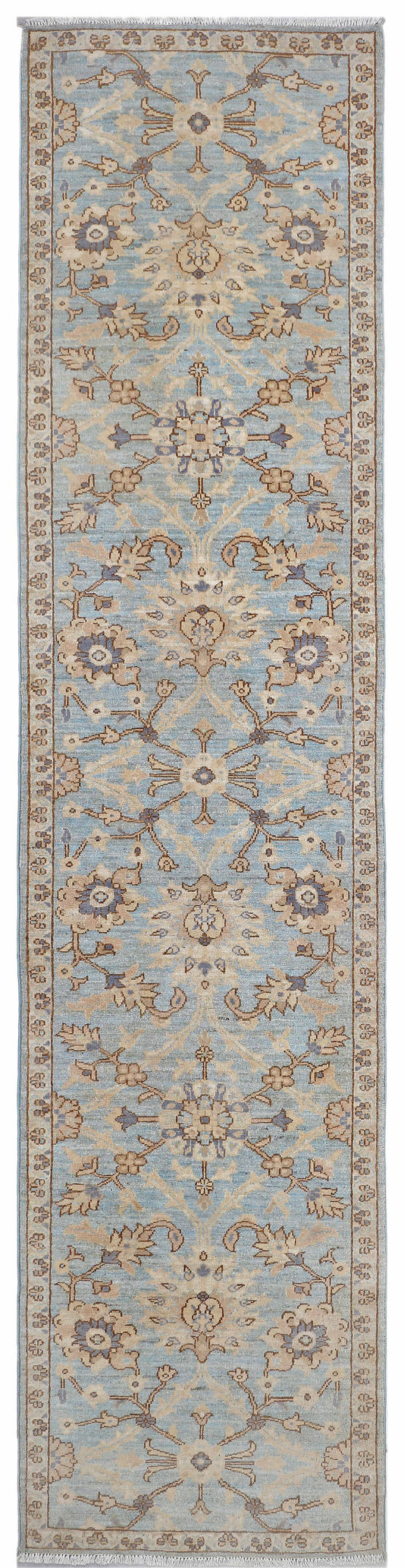 Sky Blue & Ivory Premium Handwoven Pure Wool Chobrang Rug, 2ft 6in x 9ft 9in