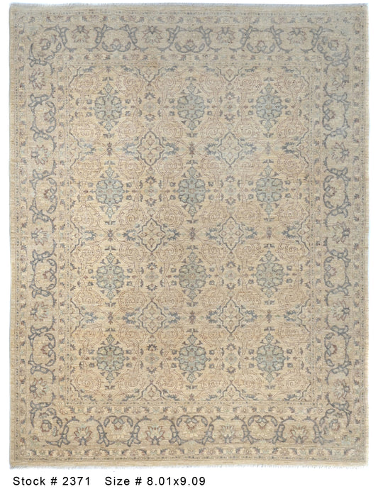 Ivory & Silver Premium Handwoven Pure Wool Chobrang Rug, 8ft 1in x 9ft 9in