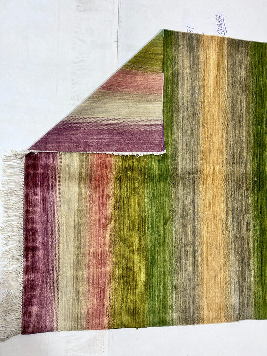 Green & Gold Premium Handwoven Pure Wool Gaba Rug, 4ft 11in x 6ft 6in