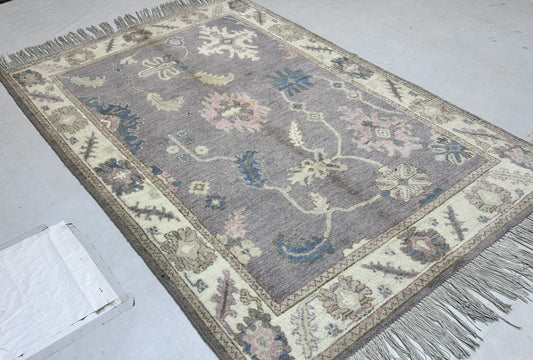 Lilac & Ivory Premium Handwoven Pure Wool Oushak Rug, 3ft 11in x 5ft 10in