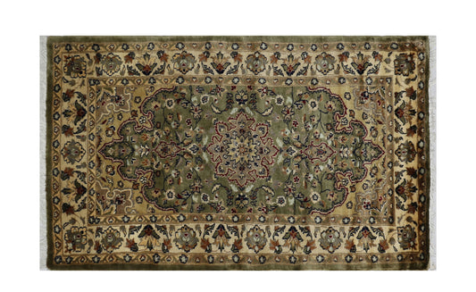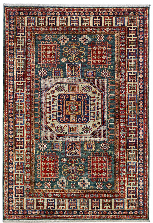 Green & Ivory Premium Handwoven Pure Wool Chobrang Rug, 3ft 10in x 6ft 0in
