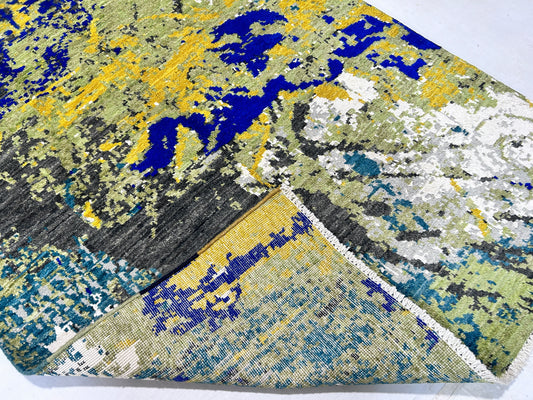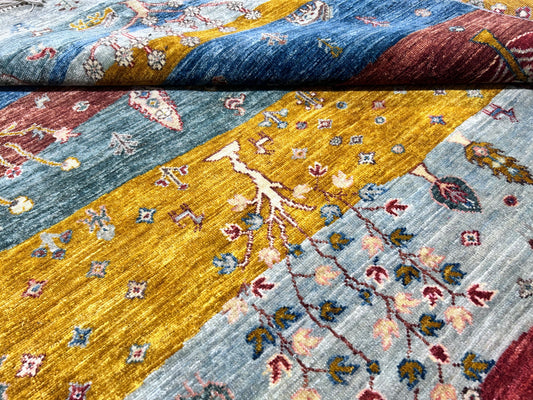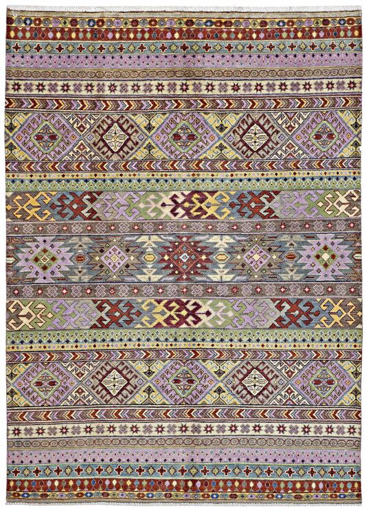 Lilac & Multi-toned Premium Handwoven Pure Wool + Silk Khorjean Rug, 5ft 7in x 7ft 11in