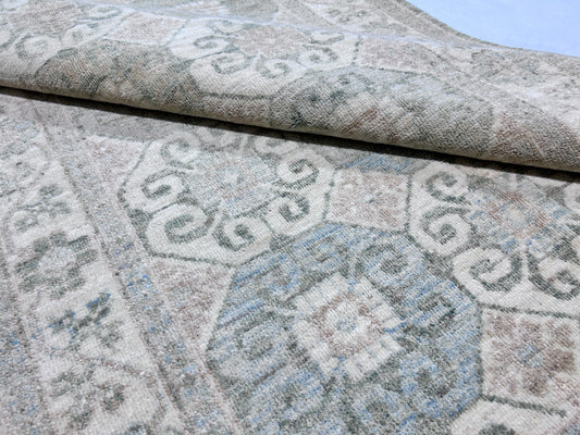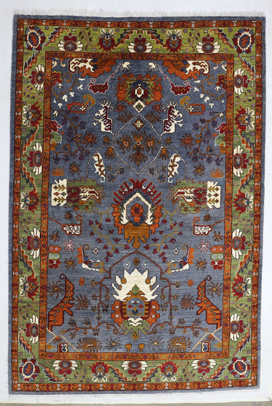 Grey & Green Premium Handwoven Pure Wool Chobrang Rug, 5ft 6in x 8ft 1in