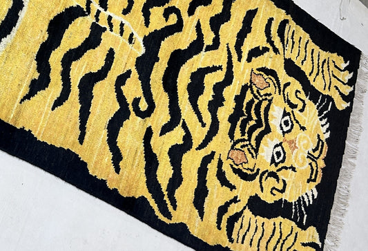 Gold & Black Premium Handwoven Pure Wool Gaba Rug, 3ft 1in x 6ft 0in