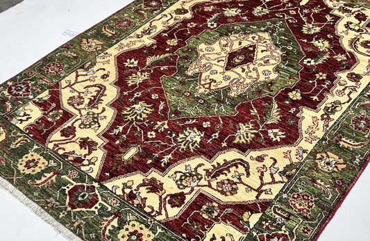 Red & Green Premium Handwoven Pure Wool Chobrang Rug, 5ft 1in x 6ft 10in