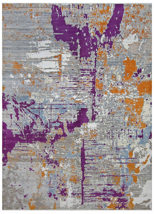 Grey & Purple Premium Handwoven Pure Wool Chobrang Rug, 8ft 7in x 11ft 11in