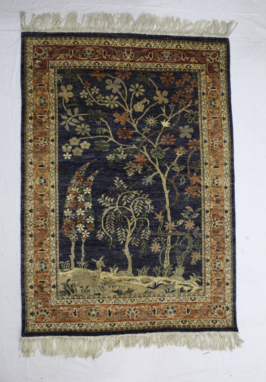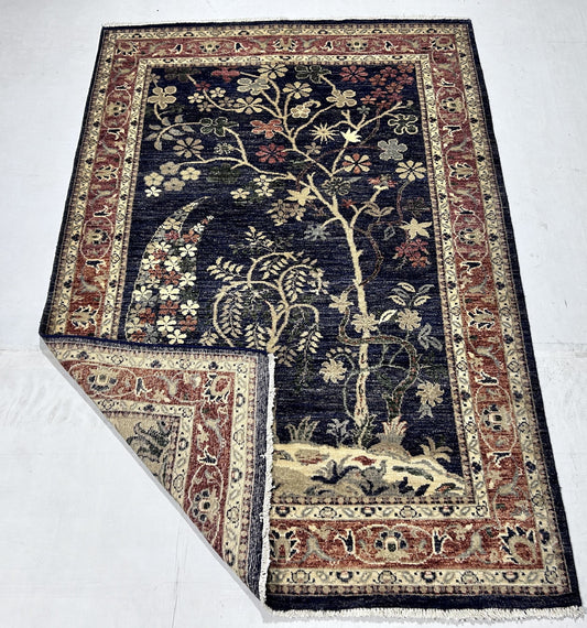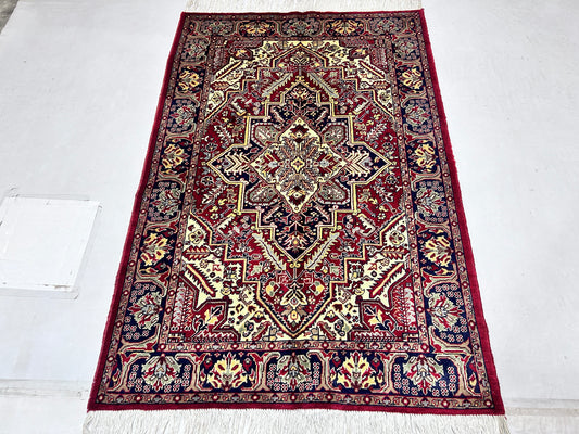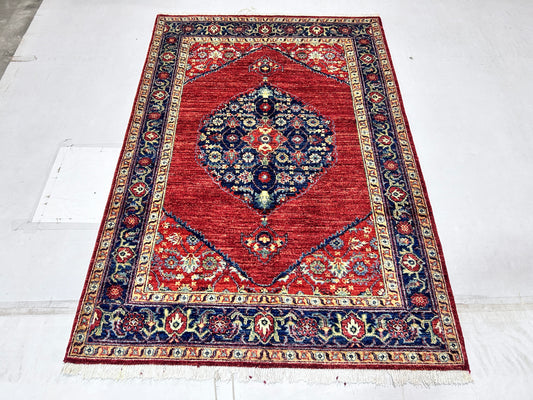 Red & Navy Blue Premium Handwoven Pure Wool Persian Rug, 4ft 0in x 6ft 2in