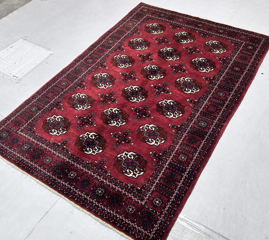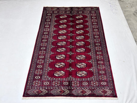 Red & Ivory Premium Handwoven Pure Wool Bokhara Rug, 4ft 1in x 6ft 3in