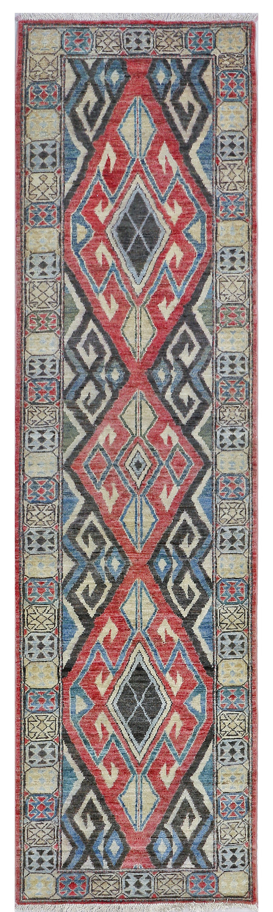 Red & Ivory Premium Handwoven Pure Wool Chobrang Rug, 2ft 7in x 9ft 8in