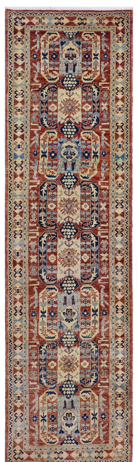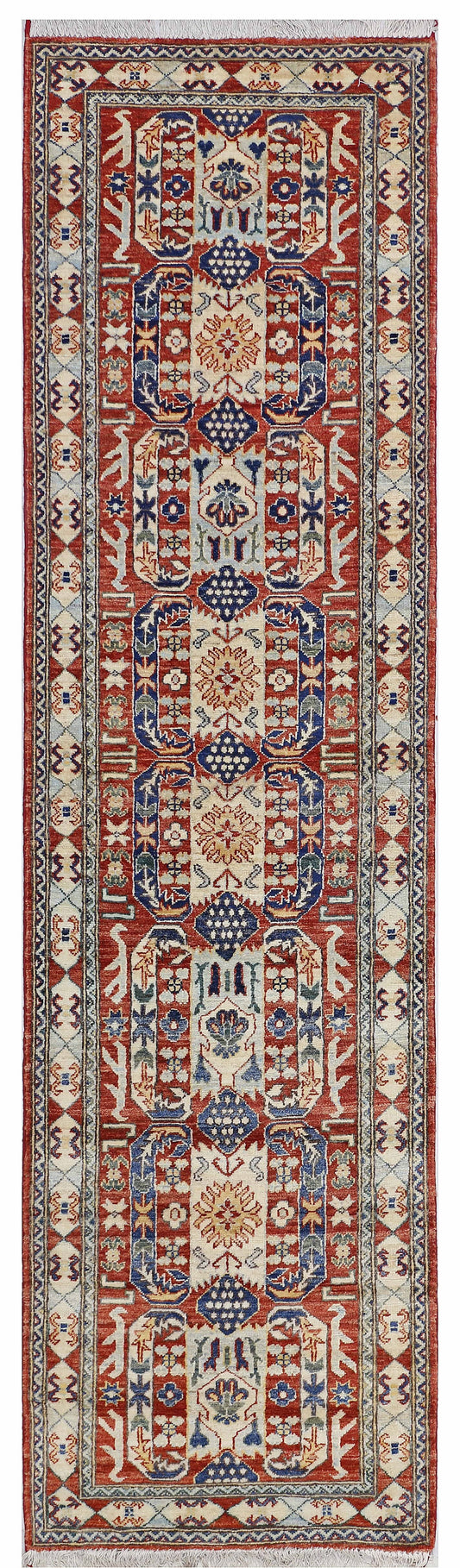 Ivory & Rust Premium Handwoven Pure Wool Chobrang Rug, 2ft 9in x 9ft 7in