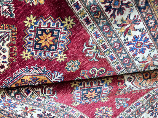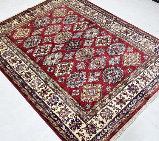 Red & Ivory Premium Handwoven Pure Wool Super Kazak Rug, 5ft 1in x 6ft 7in