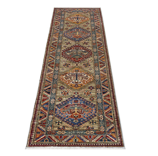 Brown & Rust Premium Handwoven Pure Wool Super Kazak Rug, 3ft 4in x 4ft 11in